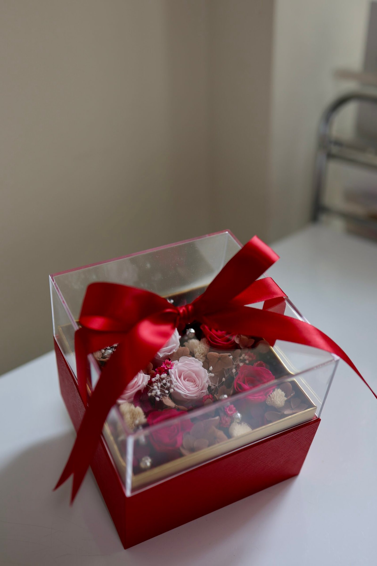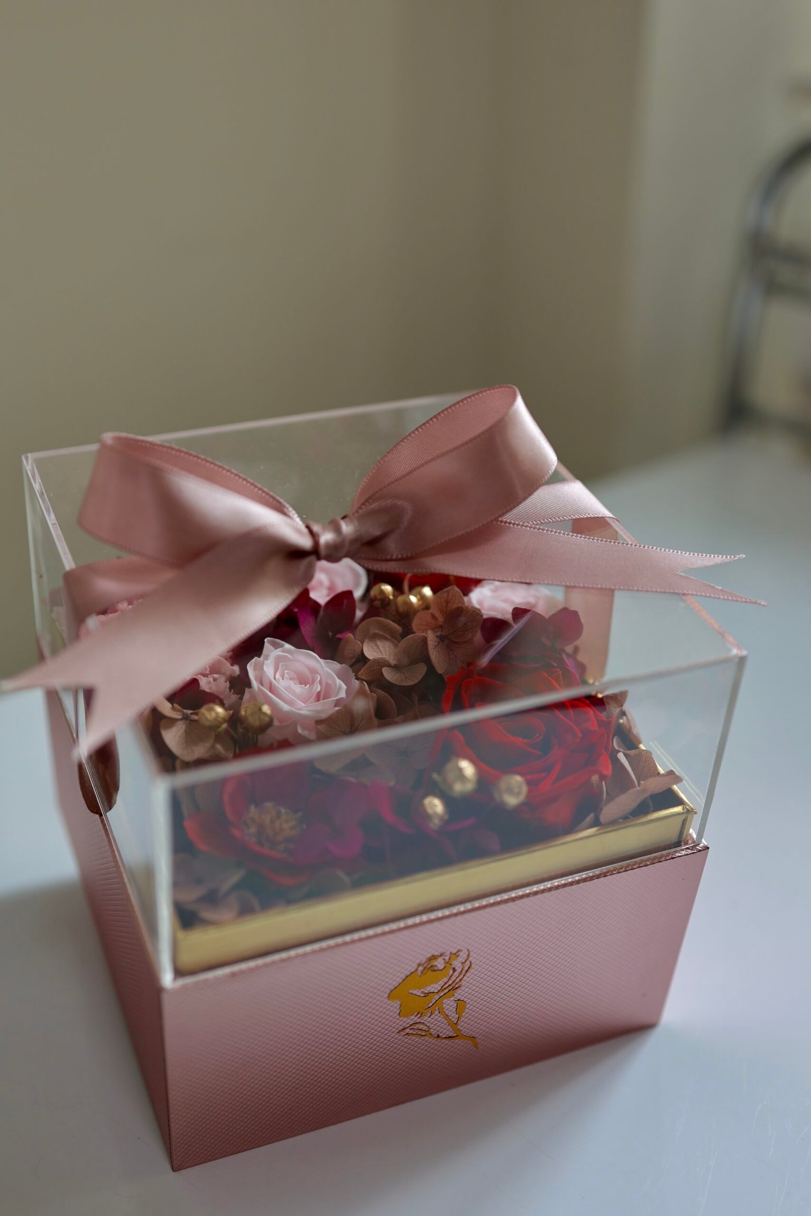 Everlasting Real Flowers – Acrylic Cover – Square Box